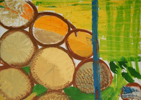Transition from One state to Another, wood, wood chips, oil on canvas, 150 x 180 cm, 2010 Sabina Woźnica