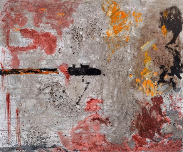 Soil, charred wood, ash, oil on canvas, 150 x 180 cm, 2010 Sabina Woźnica